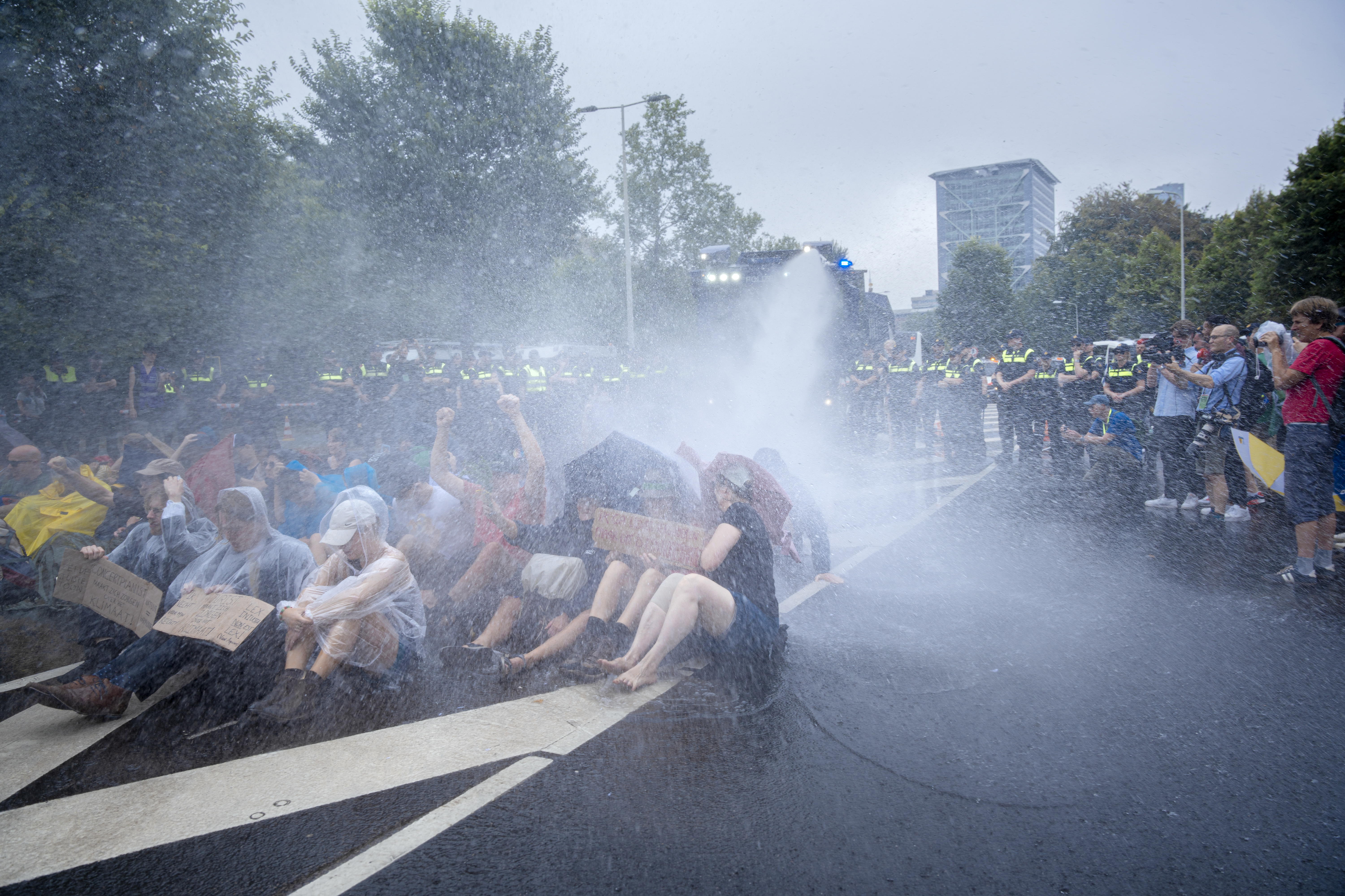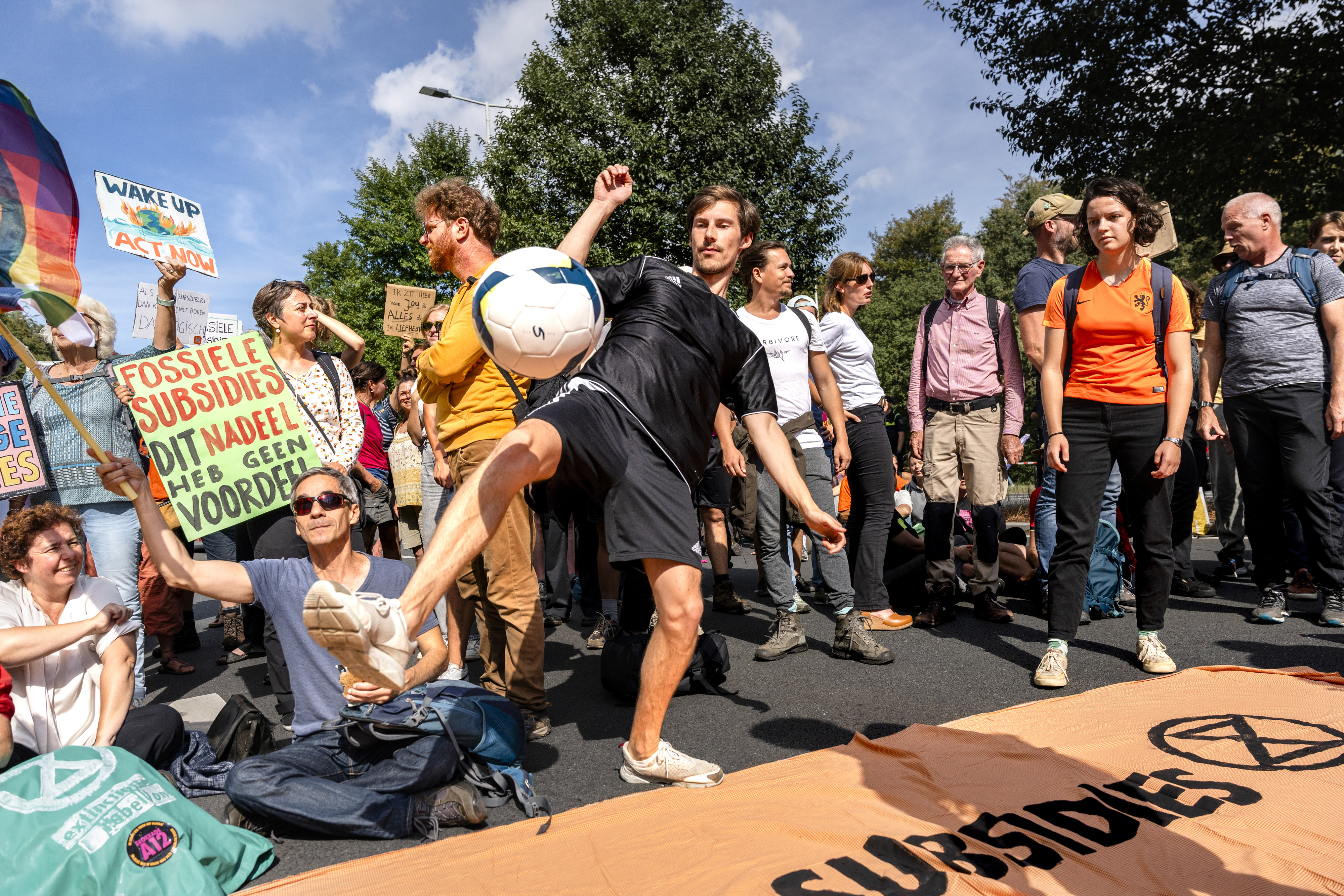 The Hague, Netherlands. First week of the permanent A12 blockade by Extinction Rebellion. Since Saturday 9th september, climate activists of all ages and professions have been blocking the highway in The Hague, demanding an immediate end to all Dutch fossile subsidies. Until then, they will continue blocking the highway every day at noon.